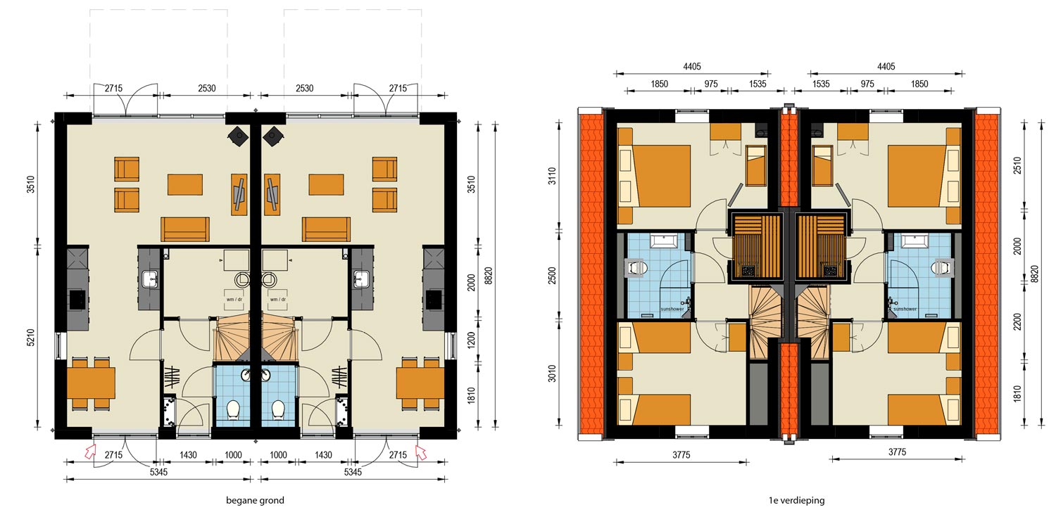 Indeling begane grond: hal met entree, separaat toilet, inpandige berging voorzien van wasmachine/droger, woonkamer met open keuken en openslaande deuren naar het terras. Verdieping: overloop, separate sauna, badkamer voorzien van inloopdouche met sunshower en toilet, tweemaal een ruime 2-persoons slaapkamer.
